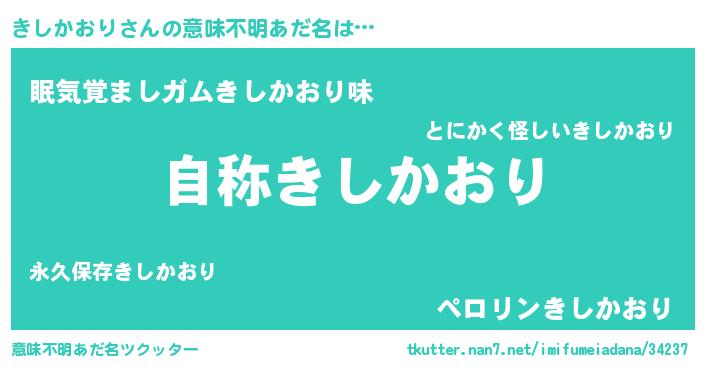 | 男性向けラノベタイトル風あだ名 | 『きしかおりに滅ぼされるだけの簡単なお仕事です』 |