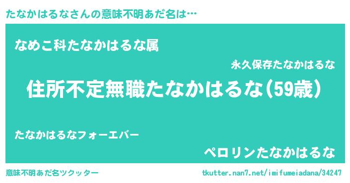 | 男性向けラノベタイトル風あだ名 | 『魔弾の王とたなかはるな』 |