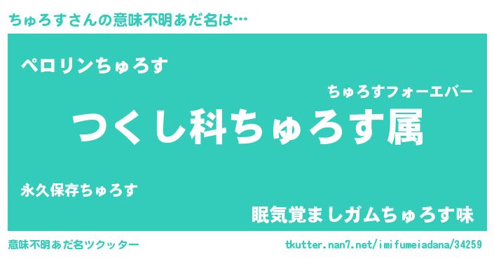 | 男性向けラノベタイトル風あだ名 | 『ちゅろす~年齢イコール彼女いない歴の魔法使い~』 |