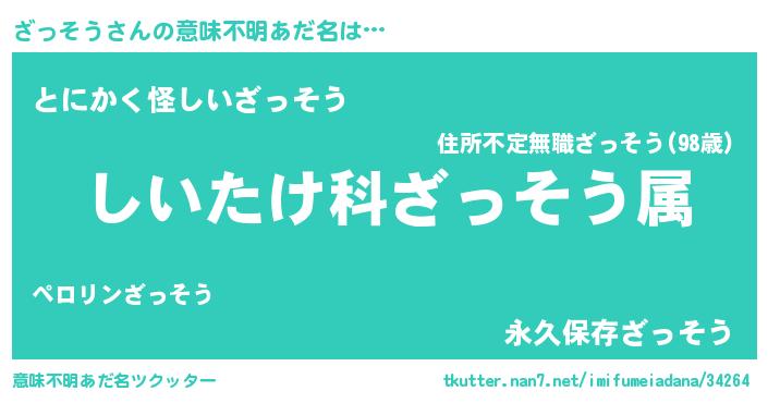 | 胡散臭い通販商品みたいなあだ名 | 『信頼と実績のサプリメント…その名も「ざっそう」』 |
