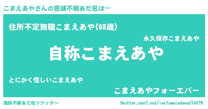 | 女子向けラノベタイトル風あだ名 | 『こまえあやストレイドッグス』 |