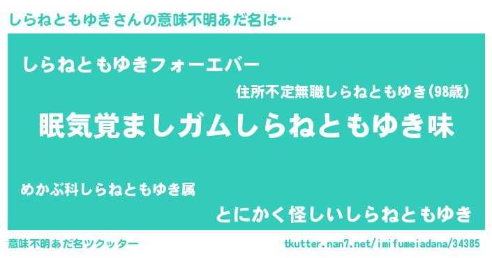 | 男性向けラノベタイトル風あだ名 | 『ノーゲーム・ノーシラネトモユキ』 |