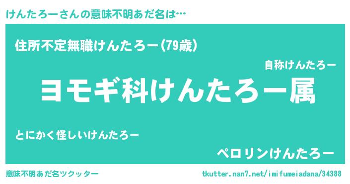 | 男性向けラノベタイトル風あだ名 | 『けんたろーに滅ぼされるだけの簡単なお仕事です』 |