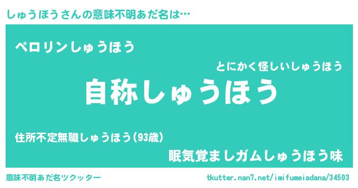 | 男性向けラノベタイトル風あだ名 | 『Re:しゅうほうから始める異世界生活』 |
