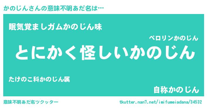 | 胡散臭い通販商品みたいなあだ名 | 『信頼と実績のサプリメント…その名も「かのじん」』 |