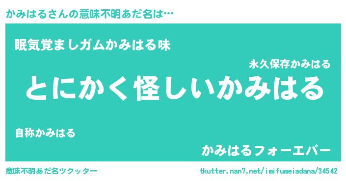 | 男性向けラノベタイトル風あだ名 | 『かみはるの嫁は女の子じゃないと思った?』 |