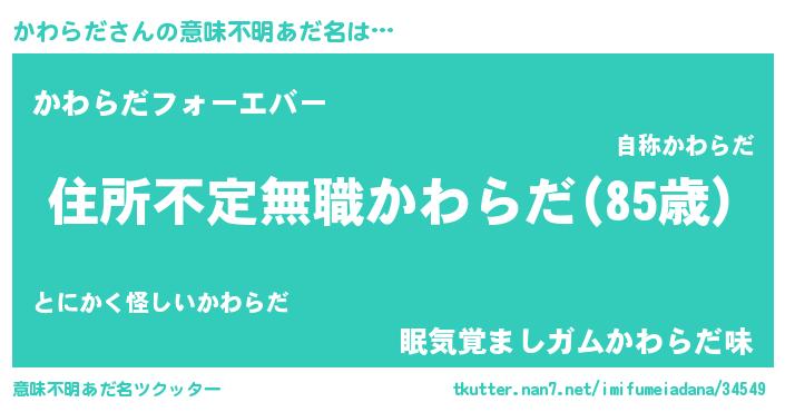 | 料理風あだ名 | 『かわらだのカルパッチョ風』 |