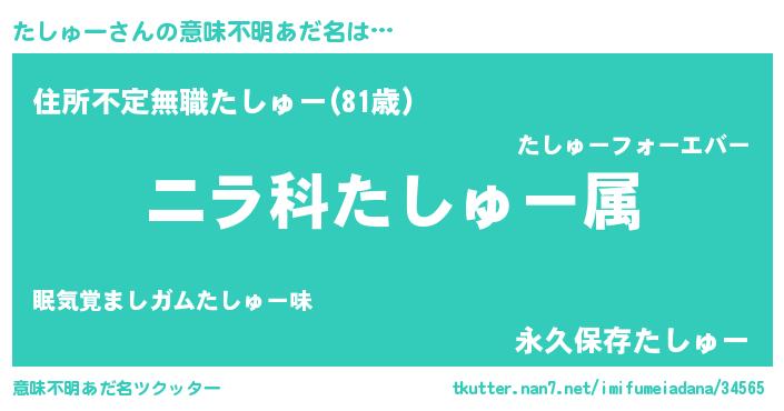 | ヘコむあだ名 | 『たしゅー(笑)』『酢こんぶ』 |