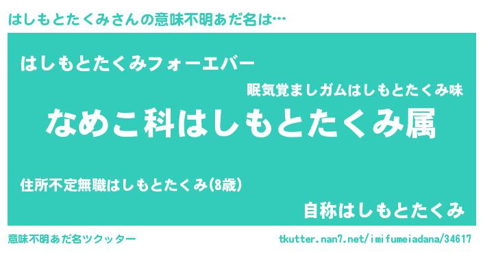 | 肩書あだ名 | 『はしもとたくみ上級大将』 |