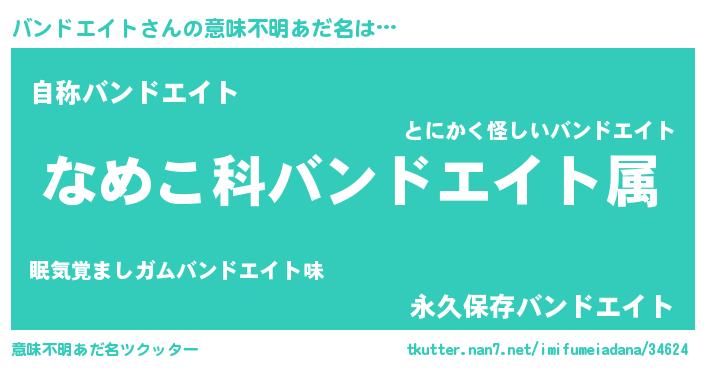 | 女子向けラノベタイトル風あだ名 | 『バンドエイトの玉の輿計画!』 |