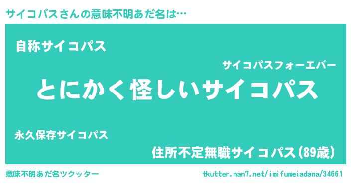 | ヒーロー風カッコイイあだ名 | 『暗黒騎士サイ』『究極戦士サイコパス』 |