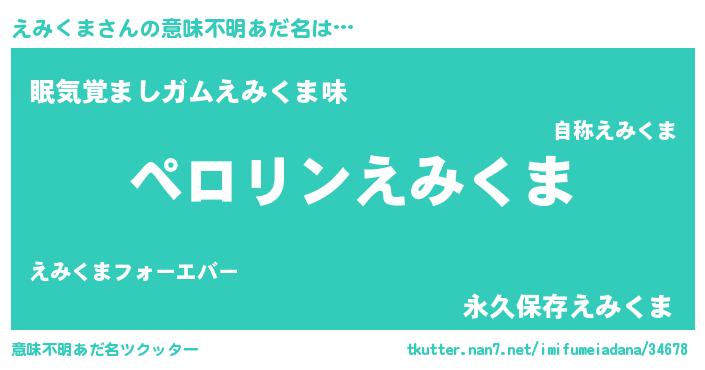 | 欧米人風あだ名 | 『マイケルえみくま』『ダニエルえみくま』 |