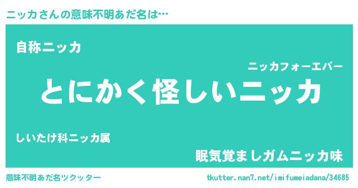 | ヒーロー風カッコイイあだ名 | 『魔戒騎士ニッ』『超時空戦士ニッカ』 |