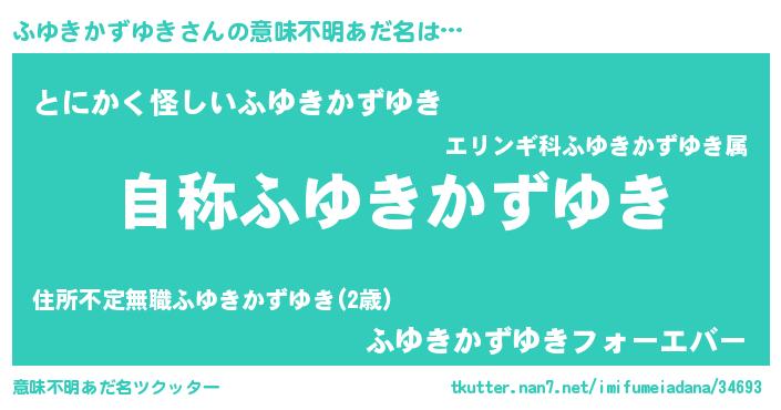 | 男性向けラノベタイトル風あだ名 | 『Re:ふゆきかずゆきから始める異世界生活』 |