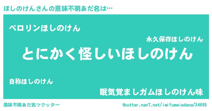 | 男性向けラノベタイトル風あだ名 | 『ほしのけんの嫁は女の子じゃないと思った?』 |