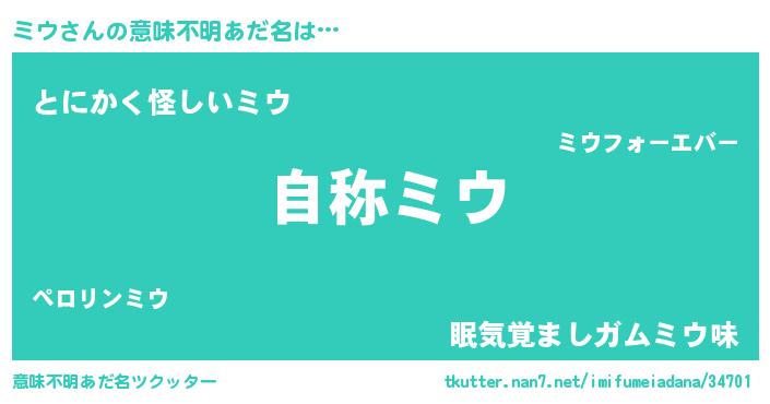 | 男性向けラノベタイトル風あだ名 | 『魔法科高校のミウ』『緋弾のミウ』 |