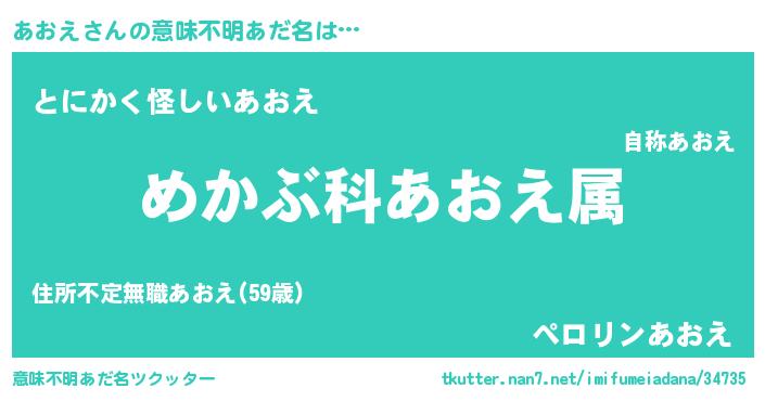 | 男性向けラノベタイトル風あだ名 | 『アオエスレイヤー』『あおえの憂鬱』 |