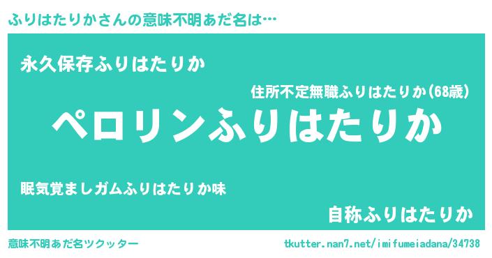 | ヘコむあだ名 | 『ふりっふぃ~』『ふりはたりか(笑)』 |