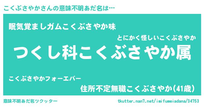 | ヘコむあだ名 | 『こくお』『つくし』『こくにー』 |
