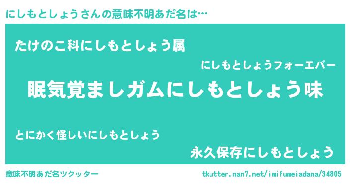 | ヘコむあだ名 | 『にしもとしょう(爆)』『豆乳』 |
