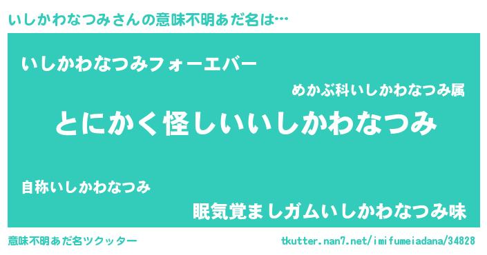 | 男性向けラノベタイトル風あだ名 | 『いしかわなつみの嫁は女の子じゃないと思った?』 |