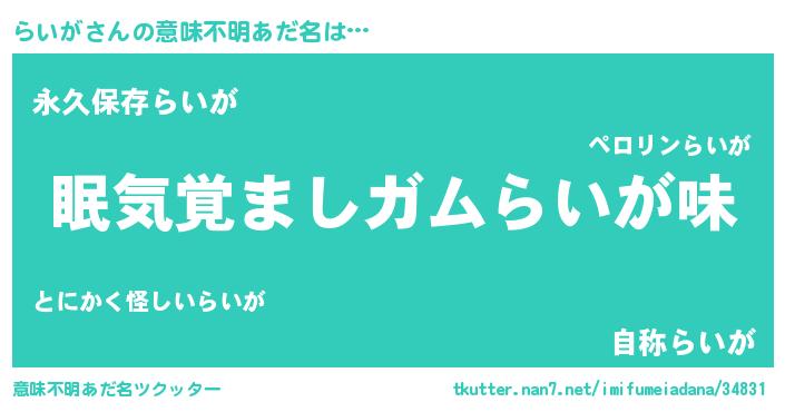| ヘコむあだ名 | 『らいが(震え声)』『らいもー』 |