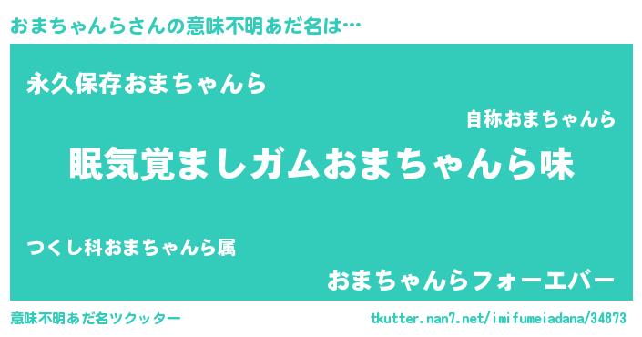 | 男性向けラノベタイトル風あだ名 | 『ノーゲーム・ノーオマチャンラ』 |