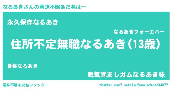 | 男性向けラノベタイトル風あだ名 | 『この素晴らしい世界になるあきを!』 |