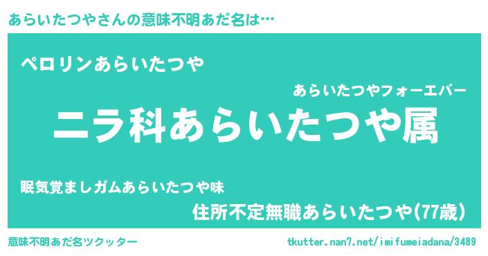 | 料理風あだ名 | 『あらいたつやとほうれんそうの和風グラタン』 |