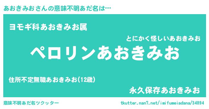 | 男性向けラノベタイトル風あだ名 | 『アオキミオアートオンライン』 |