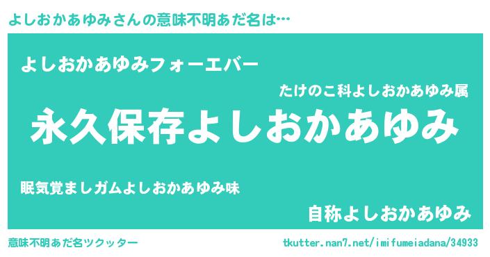 | 胡散臭い通販商品みたいなあだ名 | 『前代未聞の健康食品…その名も「よしおかあゆみ」』 |
