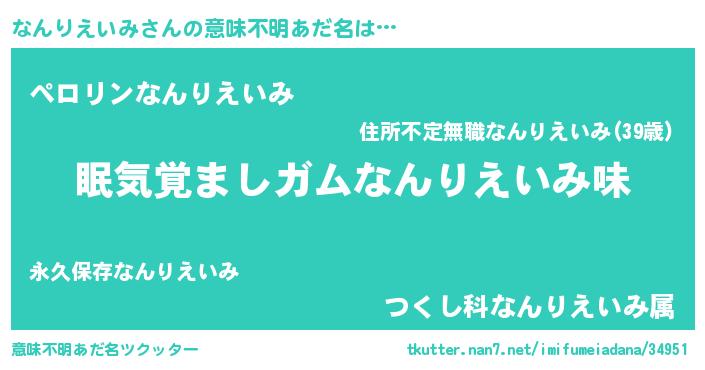 | 男性向けラノベタイトル風あだ名 | 『ノーゲーム・ノーナンリエイミ』 |
