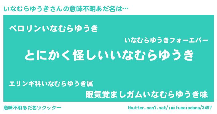 | 胡散臭い通販商品みたいなあだ名 | 『信頼と実績のサプリメント…その名も「いなむらゆうき」』 |