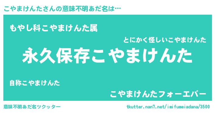 | ヘコむあだ名 | 『こやまけんた(苦笑)』『なまこ酢』 |