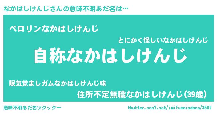 | 男性向けラノベタイトル風あだ名 | 『Re:なかはしけんじから始める異世界生活』 |