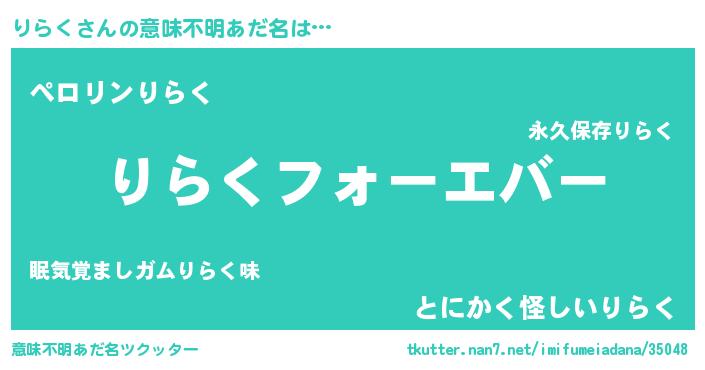 | ファンタジー風あだ名 | 『エターナルリラクー』『リラフェル』 |