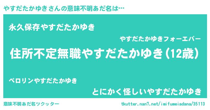 | ヘコむあだ名 | 『やすだたかゆき(笑)』『やすっぺ』 |