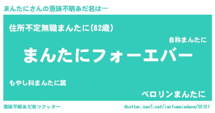 | 欧米人風あだ名 | 『まんたに・ステッグマイヤー』 |