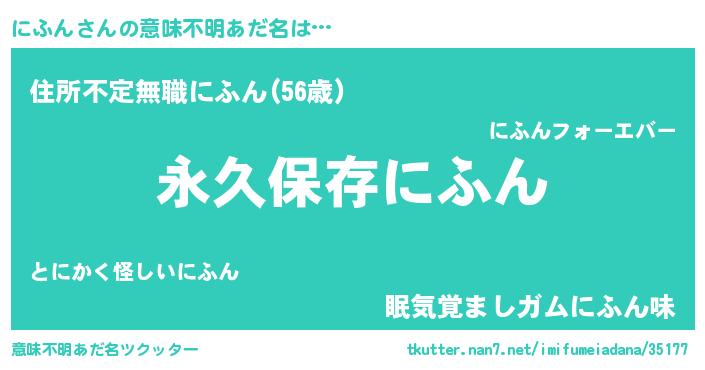 | ポケモン風あだ名 | 『ニフゴンZ』『ゼニニフ』『ニーフイ』 |