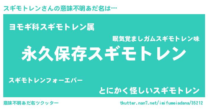 | 女子向けラノベタイトル風あだ名 | 『異世界でカフェスギモトレンを開店しました。』 |