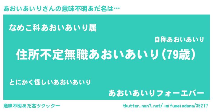 | 欧米人風あだ名 | 『ダレノガレあおいあいり』 |