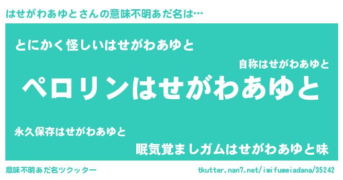 | 男性向けラノベタイトル風あだ名 | 『ハセガワアユトアートオンライン』 |