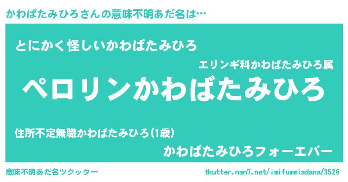 | 胡散臭い通販商品みたいなあだ名 | 『必ず成功する水晶球…その名も「かわばたみひろ」』 |