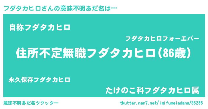 女子向けラノベタイトル風あだ名 | 『乙女ゲームの破滅フラグしかない悪役フダタカヒロに転生してしまった…』 |
