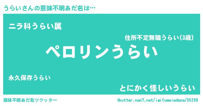 | 恥ずかしいあだ名 | 『プリティーうらい』『ウラリンリン』 |
