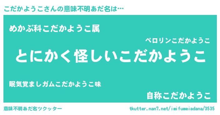 | 欧米人風あだ名 | 『ウサインこだかようこ』 |
