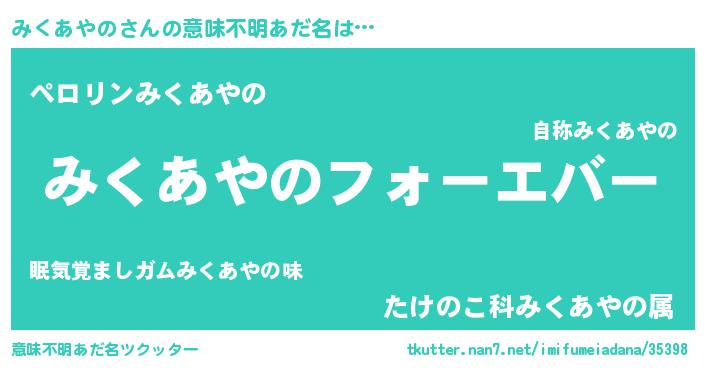 | ヒーロー風カッコイイあだ名 | 『ウルトラみくあやのマン』 |