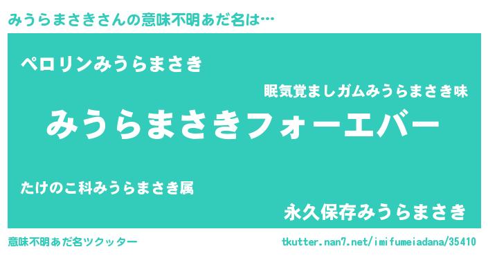 | 女子向けラノベタイトル風あだ名 | 『みうらまさきの雑貨屋さん』 |