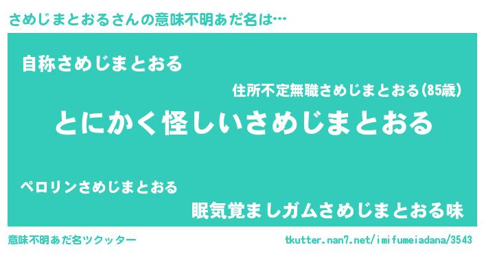 | 女子向けラノベタイトル風あだ名 | 『さめじまとおる様がみてる』 |