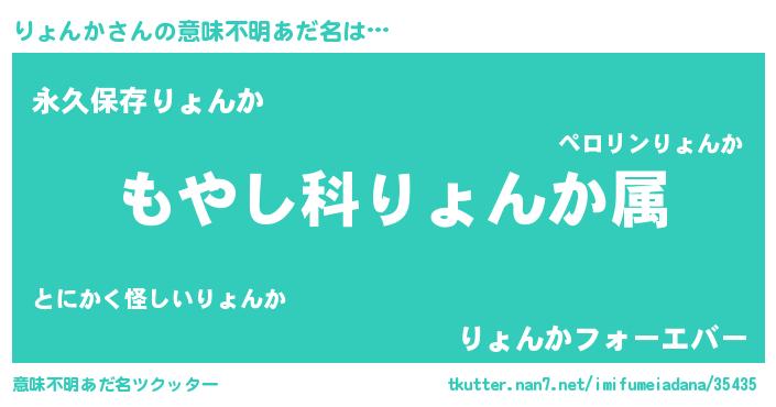 | 男性向けラノベタイトル風あだ名 | 『転生したらりょんかだった件』 |